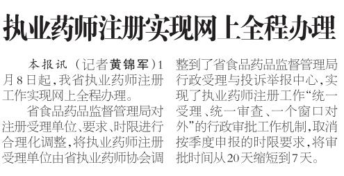 1月8日起,我省执业药师注册工作实现网上全程办理。