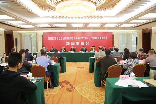 4月28日下午,贯彻实施《江西省食品小作坊小餐饮小食杂店小摊贩管理条例》新闻发布会在南昌召开。省人大常委会副主任马志武出席会议并讲话,省人大常委会副主任龚建华主持会议。省政府副秘书长陈敏、省局党组书记曹麒分别就条例的实施工作进行了部署。