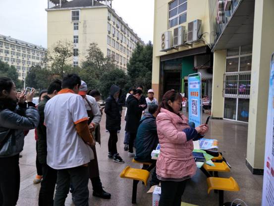 活动中,该局工作人员在南昌大学三食堂和四食堂挂起食品安全法律知识竞赛横幅,在门口放置二维码海报,引导经过的学生参与现场扫描二维码答题,在每个餐桌上都贴有二维码小海报,方便学生扫描答题。食堂工作人员看到门口有普法活动,也纷纷参与其中,扫描二维码答题。