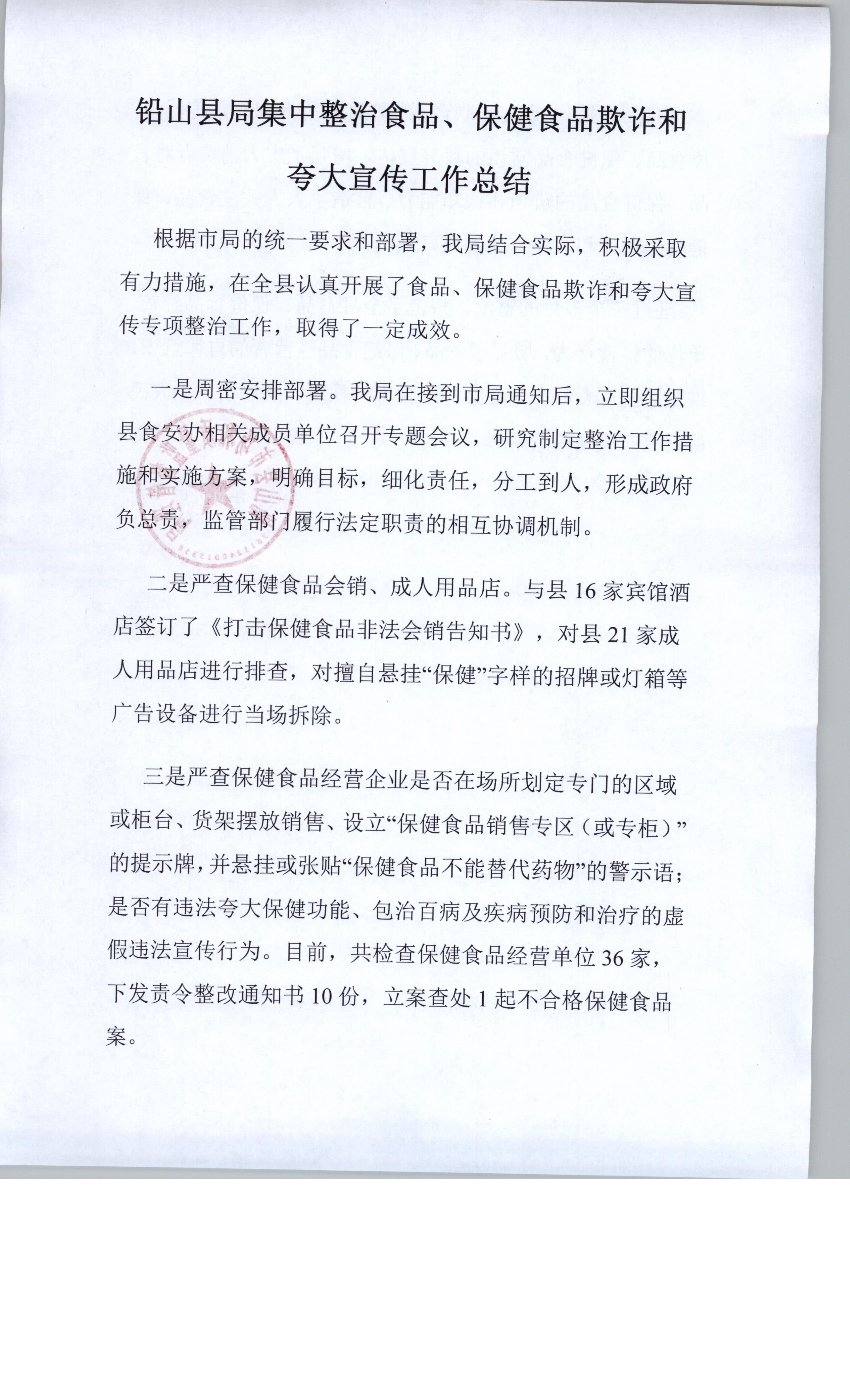 铅山县开展食品、保健品欺诈整治工作总结